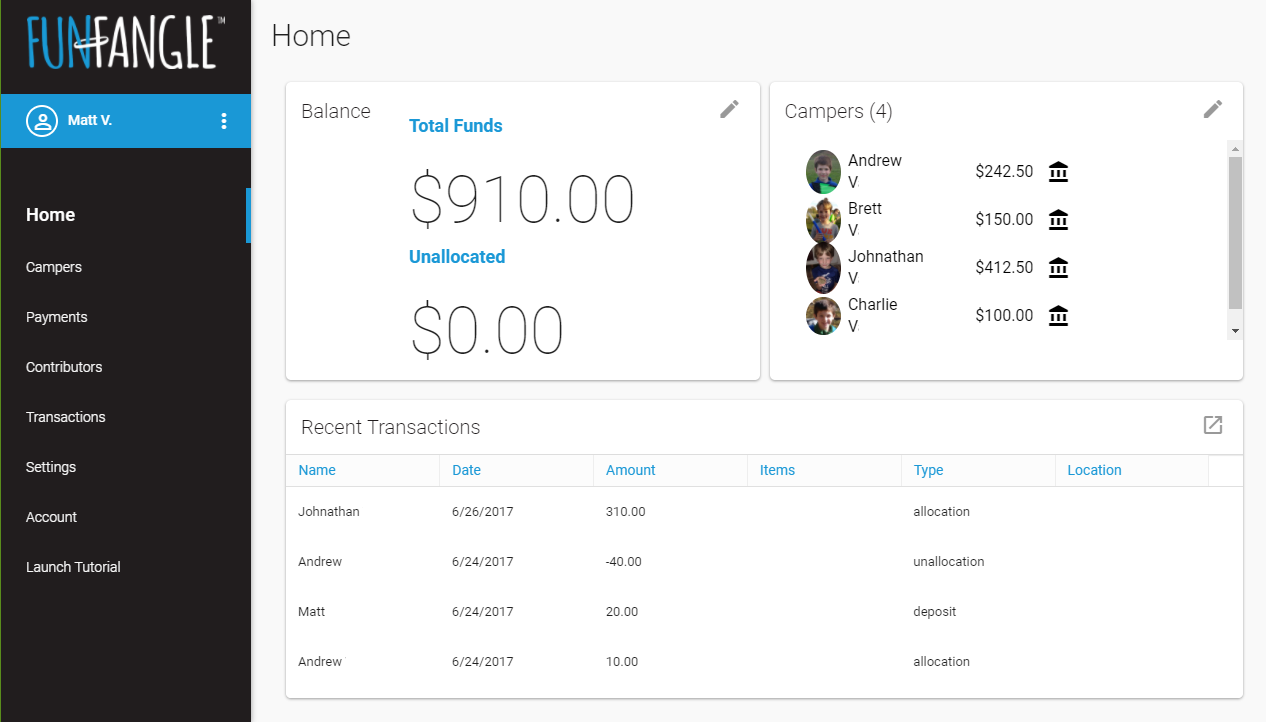 FunFangle made going cashless for our summer camp so easy. Their support team was very good at resolving any issues that came up. Parents don’t need to worry about kids losing their money. More importantly, they can track their kids purchases through their login allowing them to see how their camper is spending their time and they can reload their campers account if they are getting low on funds. The program is easy to use for both parents and staff and refunds happen with a click of a button. We are glad we made this move.